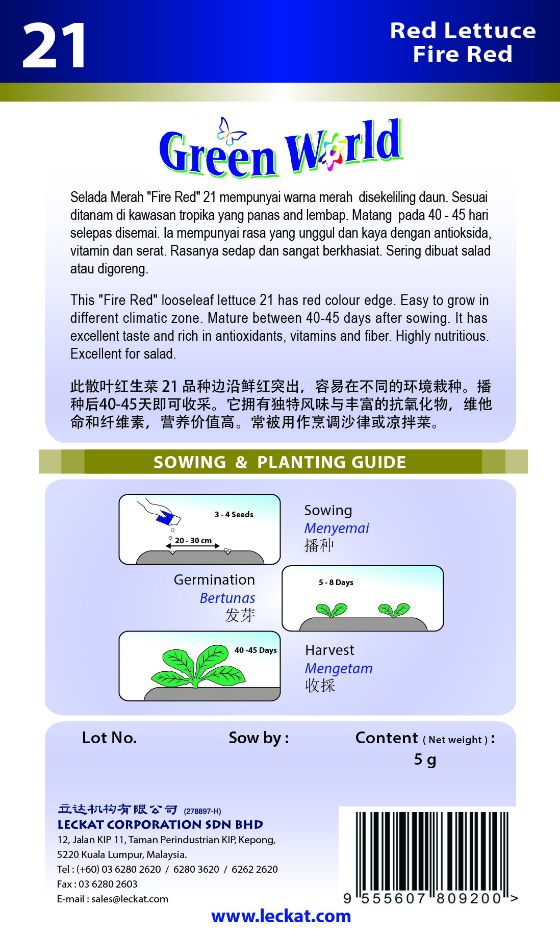 - People in 40-45 days after sowing. It has a superior flavor and is rich in antioxidants, vitamin and fiber.